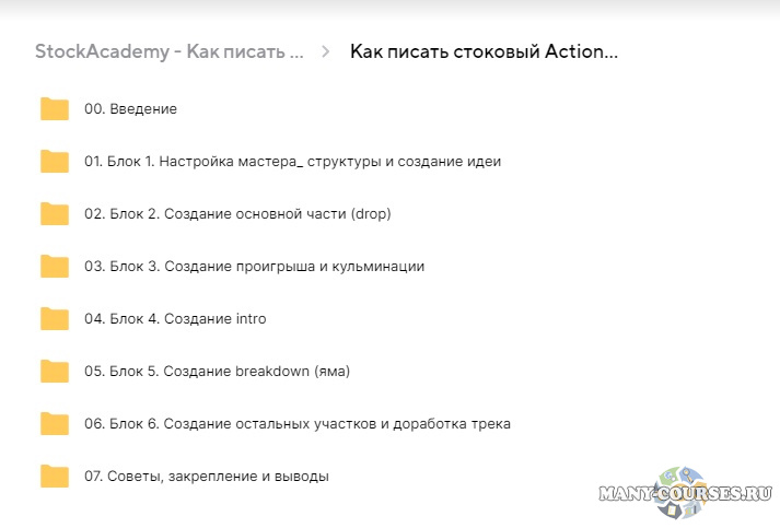 Вы находитесь на странице товара «StockAcademy - Как писать стоковый Action Rock за 2 часа с прибылью 50-800$», это материал 2021 года, который, мы надеемся, принесет вам пользу. Данный курс расположен на платформе «Облако Mail».Скриншоты с платформы на которой расположены материалы вы можете найти выше. В нашем магазине курсы доступны по самым выгодным ценам. Вы можете перейти на оригинальный продажник, после чего принять решение о покупке. Если бы вы покупали у самого автора, то данный курс вам обошелся 10000 рублей. Вы получаете этот курс, купив в нашем магазине MANY-COURSES.NET, с огромной скидкой, всего 190 рублей. Обучающий курс входит в рубрику «Музыка / Бизнес, менеджмент, продажи / Схемы заработка», вы можете поискать другие сливы курсов в этой рубрике. В нашем магазине Вы найдёте ещё много курсов от автора «StockAcademy», достаточно ввести в поиск имя автора.