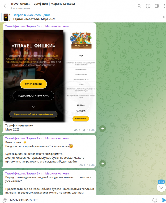 Вы находитесь на странице товара «Марина Коткова - Travel-фишки 2025. Тариф Вип», это материал 2025 года, который, мы надеемся, принесет вам пользу. Данный курс расположен на платформе «Канал Telegram».Скриншоты с платформы на которой расположены материалы вы можете найти выше. В нашем магазине курсы доступны по самым выгодным ценам. Вы получаете этот курс, купив в нашем магазине MANY-COURSES.NET, с огромной скидкой, всего 990 рублей. Обучающий курс входит в рубрику « Отдых и путешествия», вы можете поискать другие сливы курсов в этой рубрике. В нашем магазине Вы найдёте ещё много курсов от автора «Марина Коткова», достаточно ввести в поиск имя автора.