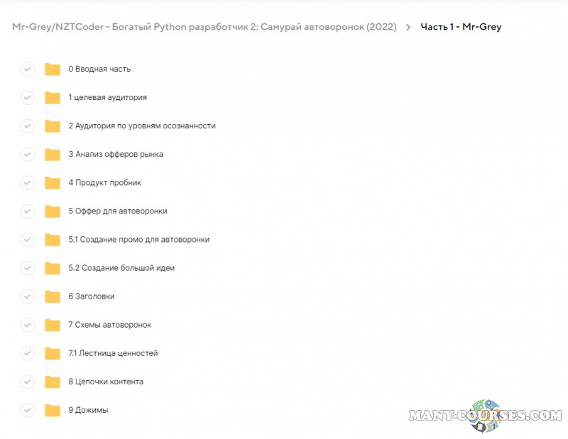 Вы находитесь на странице товара «Mr-Grey/NZTCoder - Богатый Python разработчик 2: Самурай автоворонок», это материал 2022 года, который, мы надеемся, принесет вам пользу. Данный курс расположен на платформе «Облако Mail».Скриншоты с платформы на которой расположены материалы вы можете найти выше. В нашем магазине курсы доступны по самым выгодным ценам. Вы можете перейти на оригинальный продажник, после чего принять решение о покупке. Если бы вы покупали у самого автора, то данный курс вам обошелся 8500 рублей. Вы получаете этот курс, купив в нашем магазине MANY-COURSES.NET, с огромной скидкой, всего 140 рублей. Обучающий курс входит в рубрику «Программирование / Бизнес, менеджмент, продажи», вы можете поискать другие сливы курсов в этой рубрике. В нашем магазине Вы найдёте ещё много курсов от автора «Mr-Grey/NZTCoder», достаточно ввести в поиск имя автора.