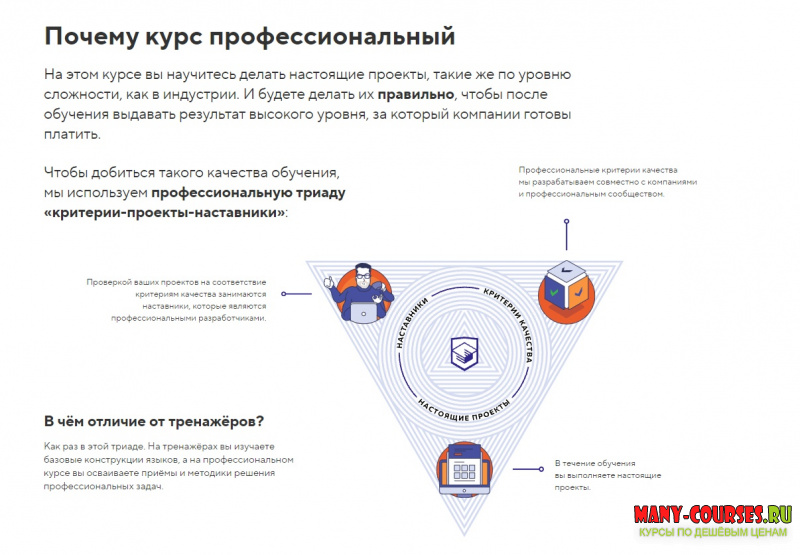 На этом курсе вы научитесь делать настоящие проекты, такие же по уровню сложности, как в индустрии. И будете делать их правильно, чтобы после обучения выдавать результат высокого уровня, за который компании готовы платить.