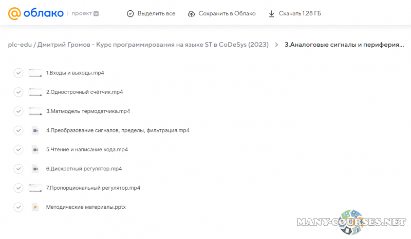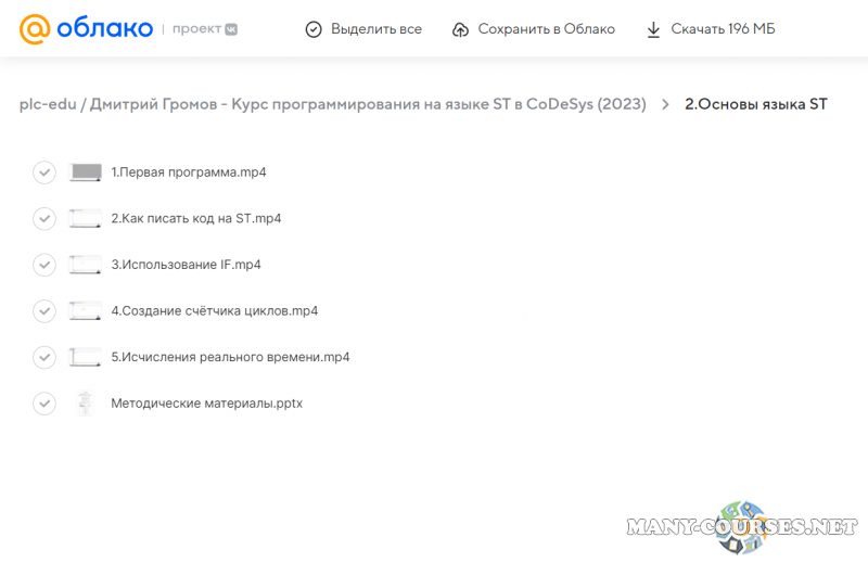 Вы находитесь на странице товара «plc-edu / Дмитрий Громов - Курс программирования на языке ST в CoDeSys», это материал 2023 года, который, мы надеемся, принесет вам пользу. Данный курс расположен на платформе «Облако Mail».Скриншоты с платформы на которой расположены материалы вы можете найти выше. В нашем магазине курсы доступны по самым выгодным ценам. Вы получаете этот курс, купив в нашем магазине MANY-COURSES.NET, с огромной скидкой, всего 720 рублей. Обучающий курс входит в рубрику «Программирование», вы можете поискать другие сливы курсов в этой рубрике. В нашем магазине Вы найдёте ещё много курсов от автора «Дмитрий Громов», достаточно ввести в поиск имя автора.