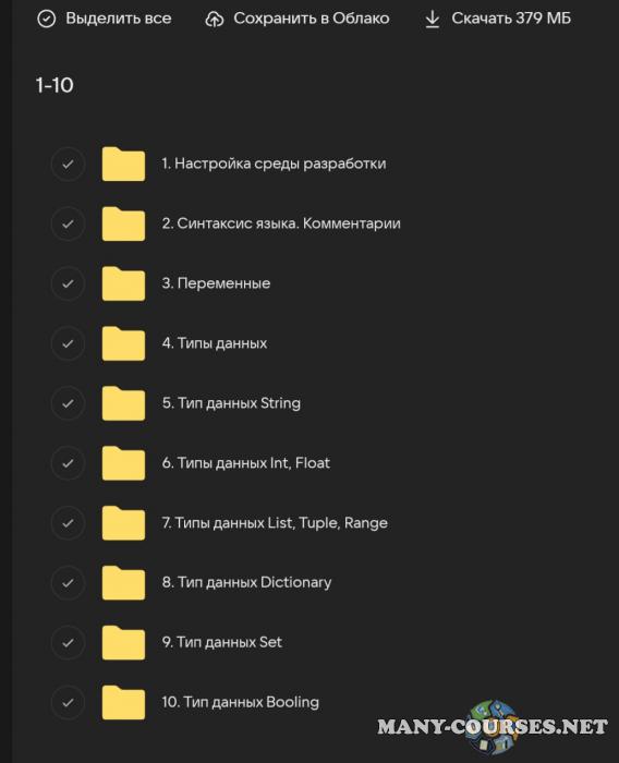 Вы находитесь на странице товара «Python с нуля до PRO. Для новичков», это материал 2022 года, который, мы надеемся, принесет вам пользу. Данный курс расположен на платформе «Облако Mail».Скриншоты с платформы на которой расположены материалы вы можете найти выше. В нашем магазине курсы доступны по самым выгодным ценам. Вы получаете этот курс, купив в нашем магазине MANY-COURSES.NET, с огромной скидкой, всего 900 рублей. Обучающий курс входит в рубрику «Программирование», вы можете поискать другие сливы курсов в этой рубрике. В нашем магазине Вы найдёте ещё много курсов от автора «», достаточно ввести в поиск имя автора.