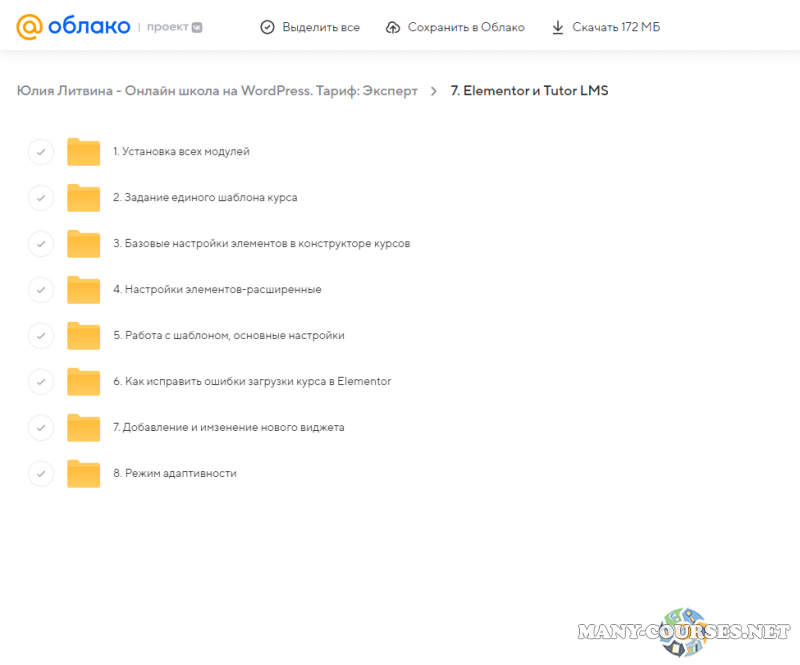Вы находитесь на странице товара «Юлия Литвина - Онлайн школа на WordPress. Тариф: Эксперт», это материал 2023 года, который, мы надеемся, принесет вам пользу. Данный курс расположен на платформе «Облако Mail».Скриншоты с платформы на которой расположены материалы вы можете найти выше. В нашем магазине курсы доступны по самым выгодным ценам. Вы можете перейти на оригинальный продажник, после чего принять решение о покупке. Если бы вы покупали у самого автора, то данный курс вам обошелся 14900 рублей. Вы получаете этот курс, купив в нашем магазине MANY-COURSES.NET, с огромной скидкой, всего 900 рублей. Обучающий курс входит в рубрику «Создание сайтов / Бизнес, менеджмент, продажи», вы можете поискать другие сливы курсов в этой рубрике. В нашем магазине Вы найдёте ещё много курсов от автора «Юлия Литвина», достаточно ввести в поиск имя автора.