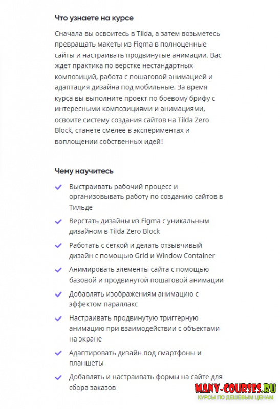 Вы находитесь на странице товара «Breezzly - Создание эксклюзивных сайтов с анимацией на Tilda Zero Block (2021)», это материал 2021 года, который, мы надеемся, принесет вам пользу. Скриншоты с платформы на которой расположены материалы вы можете найти выше. В нашем магазине курсы доступны по самым выгодным ценам. Вы можете перейти на оригинальный продажник, после чего принять решение о покупке. Если бы вы покупали у самого автора, то данный курс вам обошелся 4000 рублей. Вы получаете этот курс, купив в нашем магазине MANY-COURSES.NET, с огромной скидкой, всего 100 рублей. Обучающий курс входит в рубрику «Создание сайтов», вы можете поискать другие сливы курсов в этой рубрике. В нашем магазине Вы найдёте ещё много курсов от автора «Breezzly», достаточно ввести в поиск имя автора.