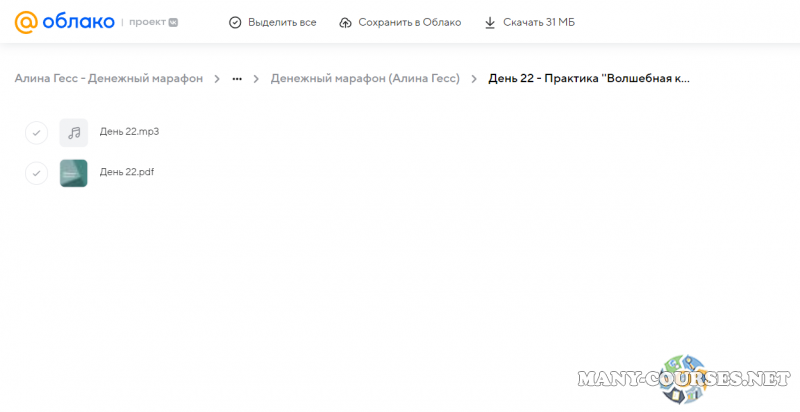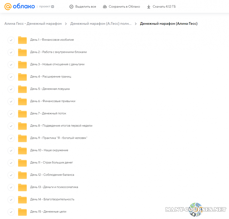 Вы находитесь на странице товара «Алина Гесс - Денежный марафон», это материал 2021 года, который, мы надеемся, принесет вам пользу. Данный курс расположен на платформе «Яндекс Диск».Скриншоты с платформы на которой расположены материалы вы можете найти выше. В нашем магазине курсы доступны по самым выгодным ценам. Вы получаете этот курс, купив в нашем магазине MANY-COURSES.NET, с огромной скидкой, всего 290 рублей. Обучающий курс входит в рубрику «Психология / Эзотерика и оккультизм», вы можете поискать другие сливы курсов в этой рубрике. В нашем магазине Вы найдёте ещё много курсов от автора «Алина Гесс», достаточно ввести в поиск имя автора.