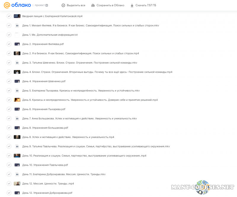Вы находитесь на странице товара «PSY2.0 / Михаил Филяев, Татьяна Шевченко - Реализация и деньги», это материал 2022 года, который, мы надеемся, принесет вам пользу. Данный курс расположен на платформе «Облако Mail».Скриншоты с платформы на которой расположены материалы вы можете найти выше. В нашем магазине курсы доступны по самым выгодным ценам. Вы получаете этот курс, купив в нашем магазине MANY-COURSES.NET, с огромной скидкой, всего 490 рублей. Обучающий курс входит в рубрику «Психология», вы можете поискать другие сливы курсов в этой рубрике. В нашем магазине Вы найдёте ещё много курсов от автора «Михаил Филяев, Татьяна Шевченко», достаточно ввести в поиск имя автора.