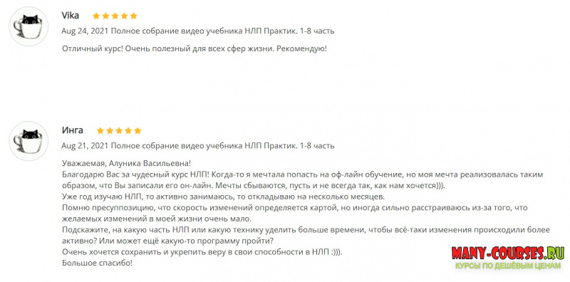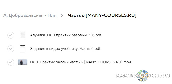 Вы находитесь на странице товара «Алуника Добровольская - Полное собрание видео учебника НЛП Практик. 1-8 часть (2021)», это материал 2021 года, который, мы надеемся, принесет вам пользу. Данный курс расположен на платформе «Яндекс Диск».Скриншоты с платформы на которой расположены материалы вы можете найти выше. В нашем магазине курсы доступны по самым выгодным ценам. Вы можете перейти на оригинальный продажник, после чего принять решение о покупке. Если бы вы покупали у самого автора, то данный курс вам обошелся 16934 рублей. Вы получаете этот курс, купив в нашем магазине MANY-COURSES.NET, с огромной скидкой, всего 399 рублей. Обучающий курс входит в рубрику «Психология», вы можете поискать другие сливы курсов в этой рубрике. В нашем магазине Вы найдёте ещё много курсов от автора «Алуника Добровольская», достаточно ввести в поиск имя автора.