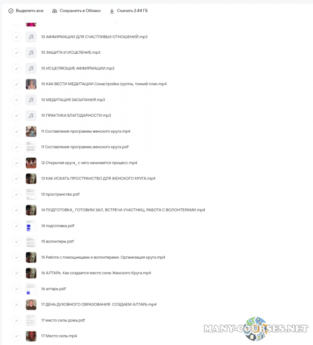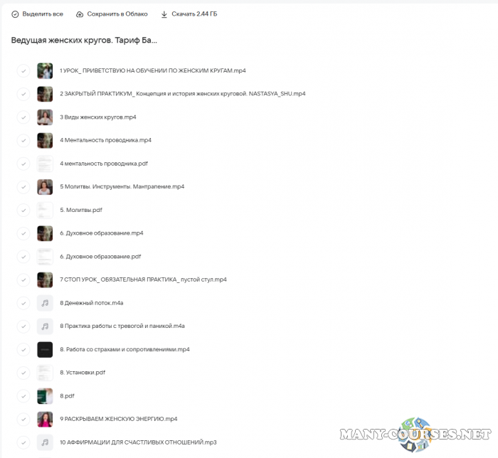 Вы находитесь на странице товара «Настасья Шумихина - Ведущая женских кругов. Тариф Базовый», это материал 2022 года, который, мы надеемся, принесет вам пользу. Данный курс расположен на платформе «Облако Mail».Скриншоты с платформы на которой расположены материалы вы можете найти выше. В нашем магазине курсы доступны по самым выгодным ценам. Вы получаете этот курс, купив в нашем магазине MANY-COURSES.NET, с огромной скидкой, всего 490 рублей. Обучающий курс входит в рубрику «Психология / Эзотерика и оккультизм», вы можете поискать другие сливы курсов в этой рубрике. В нашем магазине Вы найдёте ещё много курсов от автора «Настасья Шумихина», достаточно ввести в поиск имя автора.