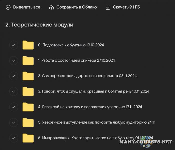 - Живой вебинар от ментора курса: «Спикерский Level UP. Комплексные рекомендации по структуре выступлений, речи, интонации». Спикер: Виктория Спиридовская