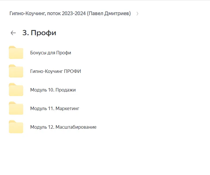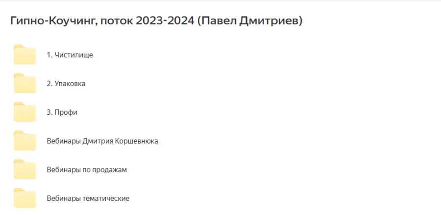 Вы находитесь на странице товара «Павел Дмитриев - Гипно-Коучинг, поток 2023-2024», это материал 2024 года, который, мы надеемся, принесет вам пользу. Данный курс расположен на платформе «Яндекс Диск».Скриншоты с платформы на которой расположены материалы вы можете найти выше. В нашем магазине курсы доступны по самым выгодным ценам. Если бы вы покупали у самого автора, то данный курс вам обошелся 190000 рублей. Вы получаете этот курс, купив в нашем магазине MANY-COURSES.NET, с огромной скидкой, всего 1990 рублей. Обучающий курс входит в рубрику «Психология / Психосоматика и гипноз», вы можете поискать другие сливы курсов в этой рубрике. В нашем магазине Вы найдёте ещё много курсов от автора «Павел Дмитриев», достаточно ввести в поиск имя автора.