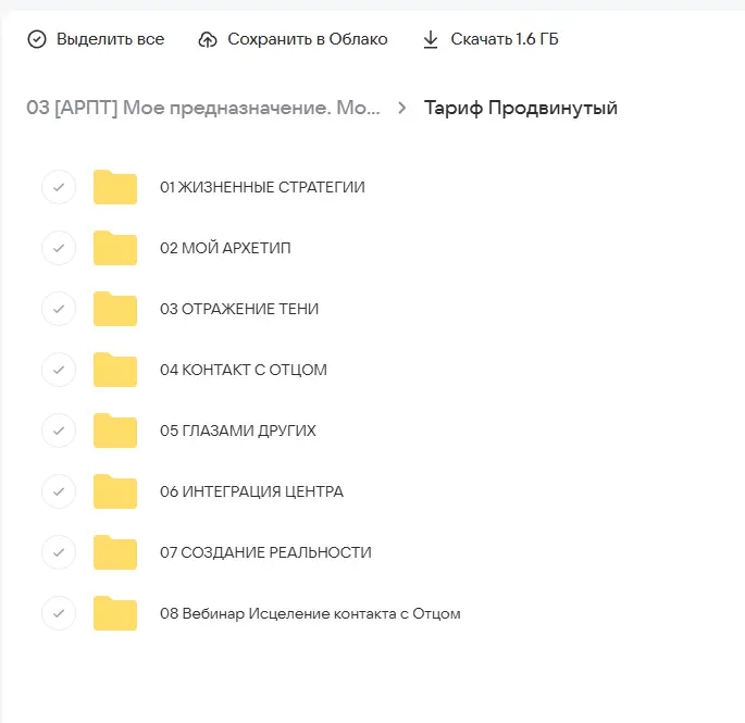 Вы находитесь на странице товара «АРПТ / Анна Чернигова - Мое предназначение. Модуль Масштабируй и монитизируй Тариф Продвинутый», это материал который, мы надеемся, принесет вам пользу. Данный курс расположен на платформе «Облако Mail».Скриншоты с платформы на которой расположены материалы вы можете найти выше. В нашем магазине курсы доступны по самым выгодным ценам. Вы получаете этот курс, купив в нашем магазине MANY-COURSES.NET, с огромной скидкой, всего 290 рублей. Обучающий курс входит в рубрику «Психология / Саморазвитие и мотивация», вы можете поискать другие сливы курсов в этой рубрике. В нашем магазине Вы найдёте ещё много курсов от автора «Анна Чернигова», достаточно ввести в поиск имя автора.