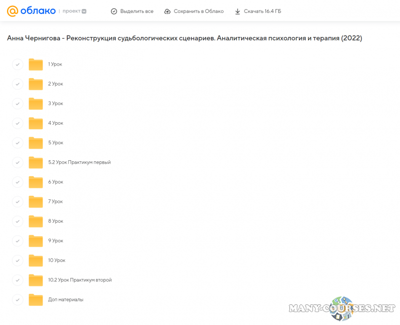 Вы находитесь на странице товара «Анна Чернигова - Реконструкция судьбологических сценариев. Аналитическая психология и терапия», это материал 2023 года, который, мы надеемся, принесет вам пользу. Данный курс расположен на платформе «Облако Mail».Скриншоты с платформы на которой расположены материалы вы можете найти выше. В нашем магазине курсы доступны по самым выгодным ценам. Вы можете перейти на оригинальный продажник, после чего принять решение о покупке. Если бы вы покупали у самого автора, то данный курс вам обошелся 55000 рублей. Вы получаете этот курс, купив в нашем магазине MANY-COURSES.NET, с огромной скидкой, всего 290 рублей. Обучающий курс входит в рубрику «Саморазвитие и мотивация / Психология / Эзотерика и оккультизм», вы можете поискать другие сливы курсов в этой рубрике. В нашем магазине Вы найдёте ещё много курсов от автора «Анна Чернигова», достаточно ввести в поиск имя автора.