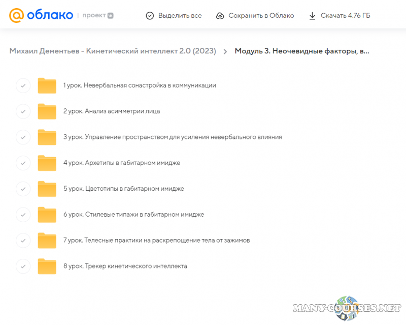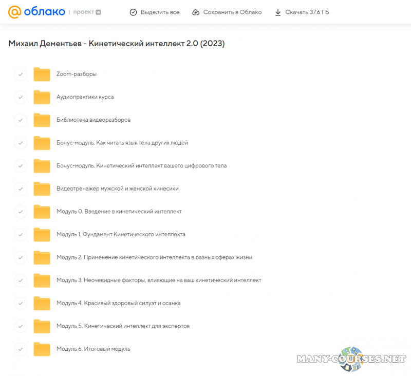 Вы находитесь на странице товара «Михаил Дементьев - Кинетический интеллект 2.0», это материал 2023 года, который, мы надеемся, принесет вам пользу. Данный курс расположен на платформе «Облако Mail».Скриншоты с платформы на которой расположены материалы вы можете найти выше. В нашем магазине курсы доступны по самым выгодным ценам. Вы можете перейти на оригинальный продажник, после чего принять решение о покупке. Если бы вы покупали у самого автора, то данный курс вам обошелся 29000 рублей. Вы получаете этот курс, купив в нашем магазине MANY-COURSES.NET, с огромной скидкой, всего 460 рублей. Обучающий курс входит в рубрику «Саморазвитие и мотивация / Эзотерика и оккультизм / Психология», вы можете поискать другие сливы курсов в этой рубрике. В нашем магазине Вы найдёте ещё много курсов от автора «Михаил Дементьев», достаточно ввести в поиск имя автора.