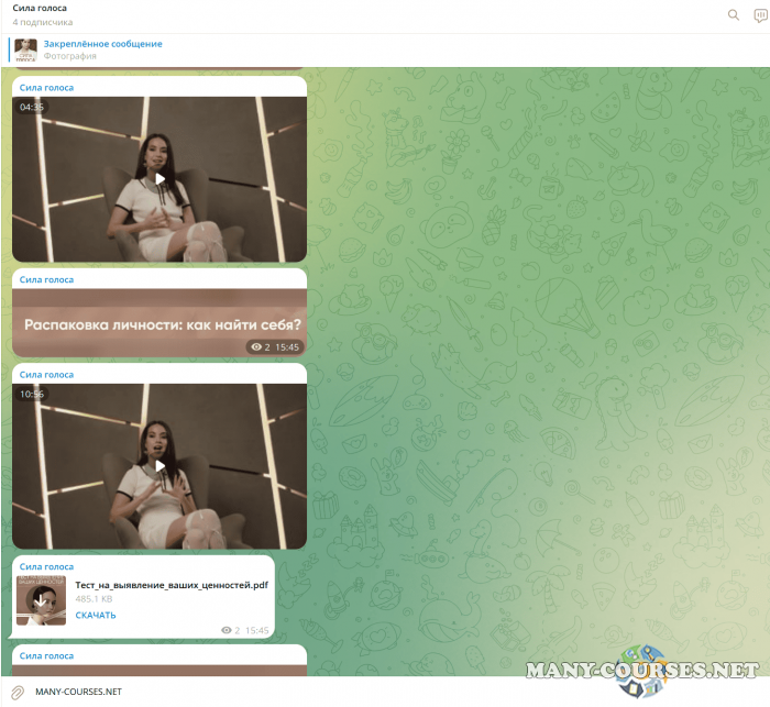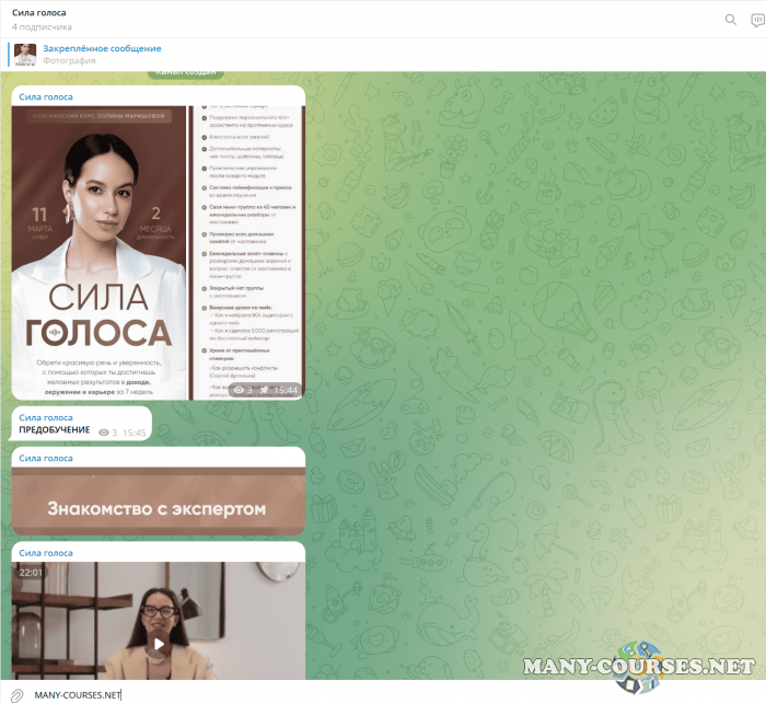 Вы находитесь на странице товара «Полина Маришова - Сила голоса. Тариф 2 Платинум», это материал 2024 года, который, мы надеемся, принесет вам пользу. Данный курс расположен на платформе «Канал Telegram».Скриншоты с платформы на которой расположены материалы вы можете найти выше. В нашем магазине курсы доступны по самым выгодным ценам. Вы можете перейти на оригинальный продажник, после чего принять решение о покупке. Вы получаете этот курс, купив в нашем магазине MANY-COURSES.NET, с огромной скидкой, всего 1490 рублей. Обучающий курс входит в рубрику «Саморазвитие и мотивация / Эзотерика и оккультизм / Психология», вы можете поискать другие сливы курсов в этой рубрике. В нашем магазине Вы найдёте ещё много курсов от автора «Полина Маришова», достаточно ввести в поиск имя автора.