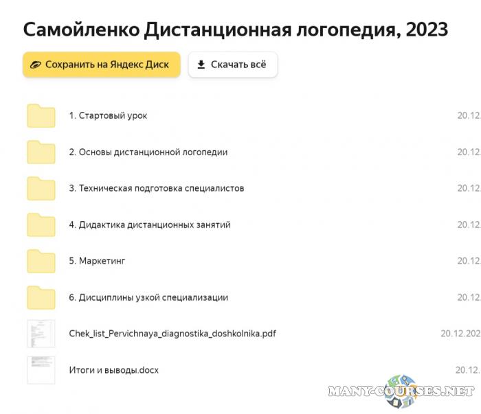 Вы находитесь на странице товара «Марина Самойленко - Дистанционная логопедия. Тариф Базовый», это материал 2023 года, который, мы надеемся, принесет вам пользу. Данный курс расположен на платформе «Яндекс Диск».Скриншоты с платформы на которой расположены материалы вы можете найти выше. В нашем магазине курсы доступны по самым выгодным ценам. Вы получаете этот курс, купив в нашем магазине MANY-COURSES.NET, с огромной скидкой, всего 480 рублей. Обучающий курс входит в рубрику «Саморазвитие и мотивация», вы можете поискать другие сливы курсов в этой рубрике. В нашем магазине Вы найдёте ещё много курсов от автора «Марина Самойленко», достаточно ввести в поиск имя автора.