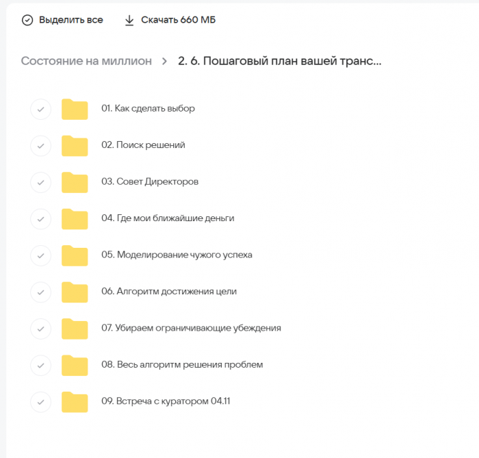 Вы находитесь на странице товара «Олеся Матёрова - Состояние на миллион 38.0. Тариф Результат», это материал который, мы надеемся, принесет вам пользу. Данный курс расположен на платформе «Облако Mail».Скриншоты с платформы на которой расположены материалы вы можете найти выше. В нашем магазине курсы доступны по самым выгодным ценам. Вы получаете этот курс, купив в нашем магазине MANY-COURSES.NET, с огромной скидкой, всего 590 рублей. Обучающий курс входит в рубрику «Саморазвитие и мотивация / Психология», вы можете поискать другие сливы курсов в этой рубрике. В нашем магазине Вы найдёте ещё много курсов от автора «Олеся Матёрова», достаточно ввести в поиск имя автора.
