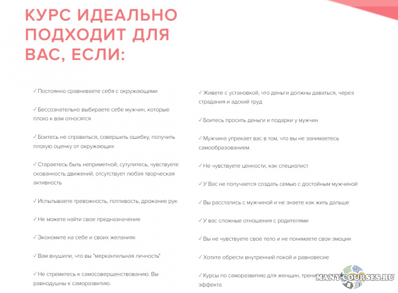 Для того, чтобы вы стали счастливой женщиной на курсе мы: