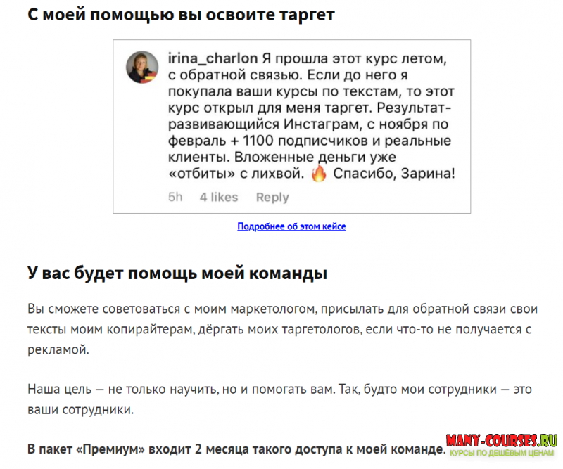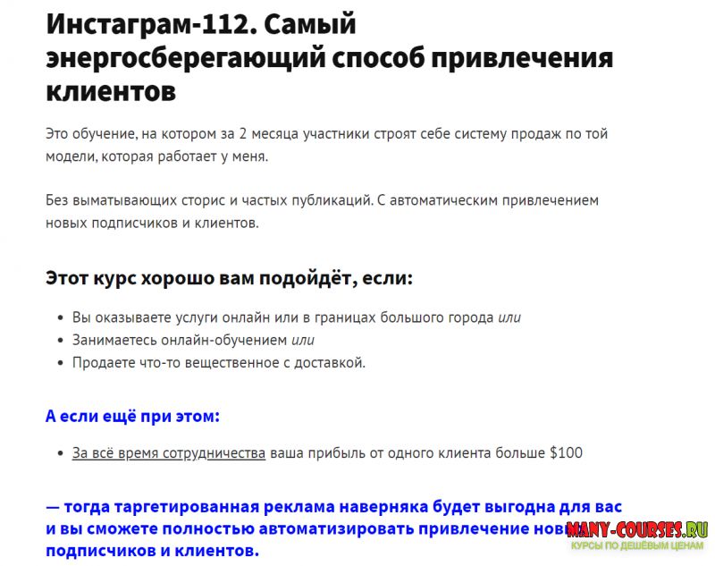 Вы находитесь на странице товара «Зарина Ивантер - Инстаграм-112 (2021)», это материал 2021 года, который, мы надеемся, принесет вам пользу. Скриншоты с платформы на которой расположены материалы вы можете найти выше. В нашем магазине курсы доступны по самым выгодным ценам. Вы можете перейти на оригинальный продажник, после чего принять решение о покупке. Если бы вы покупали у самого автора, то данный курс вам обошелся 14970 рублей. Вы получаете этот курс, купив в нашем магазине MANY-COURSES.NET, с огромной скидкой, всего 99 рублей. Обучающий курс входит в рубрику «SEO и SMM / Instagram», вы можете поискать другие сливы курсов в этой рубрике. В нашем магазине Вы найдёте ещё много курсов от автора «Зарина Ивантер», достаточно ввести в поиск имя автора.