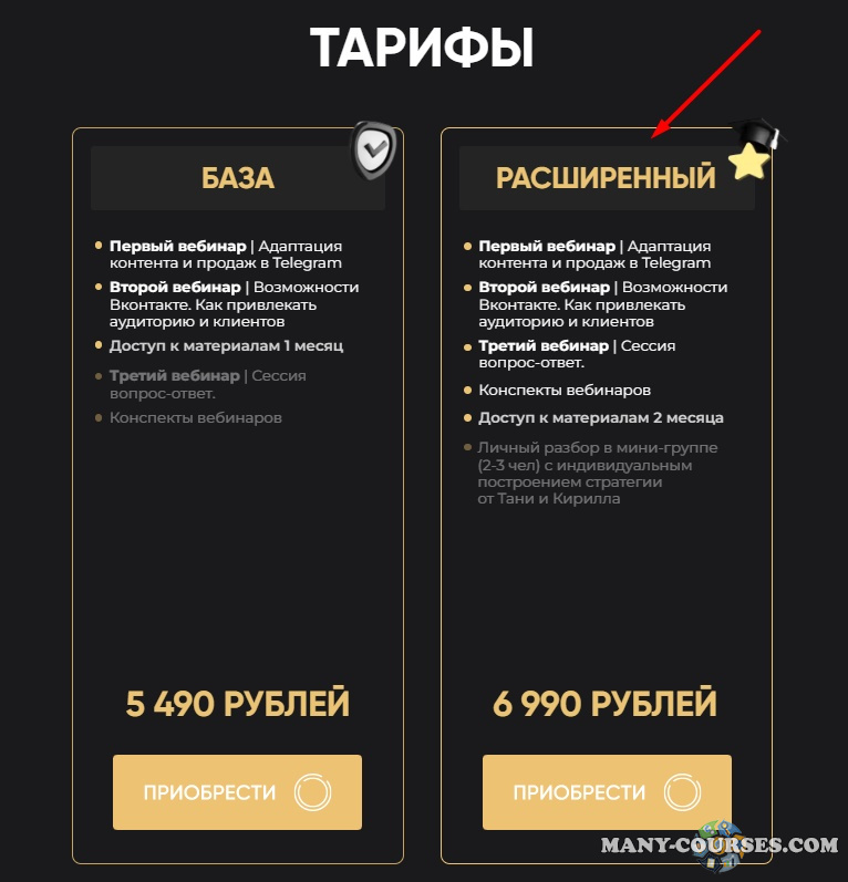 - Добавьте товар "Татьяна Миронова - Адаптация контента и продаж в Telegram и ВКонтакте. Тариф Расширенный" в корзину или нажмите "Купить", чтобы быстро перейти к странице оформления заказа. (В корзину можно добавить сразу несколько курсов)