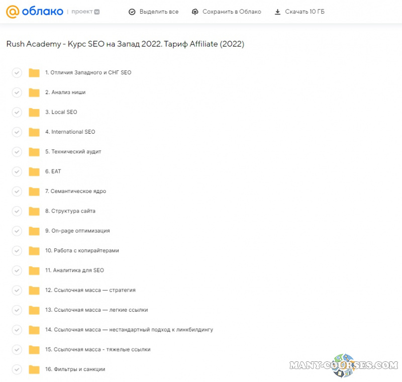 Вы находитесь на странице товара «Rush Academy - Курс SEO на Запад. Тариф Affiliate», это материал 2022 года, который, мы надеемся, принесет вам пользу. Данный курс расположен на платформе «Облако Mail».Скриншоты с платформы на которой расположены материалы вы можете найти выше. В нашем магазине курсы доступны по самым выгодным ценам. Вы можете перейти на оригинальный продажник, после чего принять решение о покупке. Если бы вы покупали у самого автора, то данный курс вам обошелся 99900 рублей. Вы получаете этот курс, купив в нашем магазине MANY-COURSES.NET, с огромной скидкой, всего 290 рублей. Обучающий курс входит в рубрику «SEO и SMM», вы можете поискать другие сливы курсов в этой рубрике. В нашем магазине Вы найдёте ещё много курсов от автора «Евгений Шестаков, Валентин Батрак», достаточно ввести в поиск имя автора.