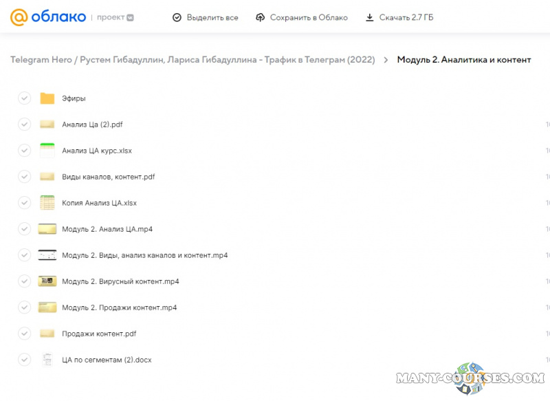 Вы находитесь на странице товара «Telegram Hero / Рустем Гибадуллин, Лариса Гибадуллина - Трафик в Телеграм», это материал 2022 года, который, мы надеемся, принесет вам пользу. Данный курс расположен на платформе «Облако Mail».Скриншоты с платформы на которой расположены материалы вы можете найти выше. В нашем магазине курсы доступны по самым выгодным ценам. Вы можете перейти на оригинальный продажник, после чего принять решение о покупке. Если бы вы покупали у самого автора, то данный курс вам обошелся 25000 рублей. Вы получаете этот курс, купив в нашем магазине MANY-COURSES.NET, с огромной скидкой, всего 300 рублей. Обучающий курс входит в рубрику «SEO и SMM / Instagram / Реклама и маркетинг», вы можете поискать другие сливы курсов в этой рубрике. В нашем магазине Вы найдёте ещё много курсов от автора «Рустем Гибадуллин, Лариса Гибадуллина», достаточно ввести в поиск имя автора.