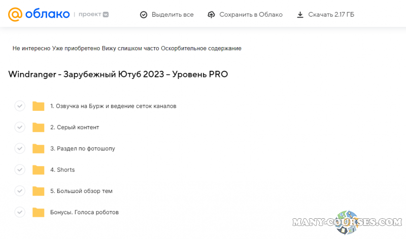 Вы находитесь на странице товара «Windranger - Зарубежный Ютуб 2023 – Уровень PRO», это материал 2023 года, который, мы надеемся, принесет вам пользу. Данный курс расположен на платформе «Облако Mail».Скриншоты с платформы на которой расположены материалы вы можете найти выше. В нашем магазине курсы доступны по самым выгодным ценам. Если бы вы покупали у самого автора, то данный курс вам обошелся 9000 рублей. Вы получаете этот курс, купив в нашем магазине MANY-COURSES.NET, с огромной скидкой, всего 120 рублей. Обучающий курс входит в рубрику «SEO и SMM / YouTube / Бизнес, менеджмент, продажи», вы можете поискать другие сливы курсов в этой рубрике. В нашем магазине Вы найдёте ещё много курсов от автора «Windranger», достаточно ввести в поиск имя автора.