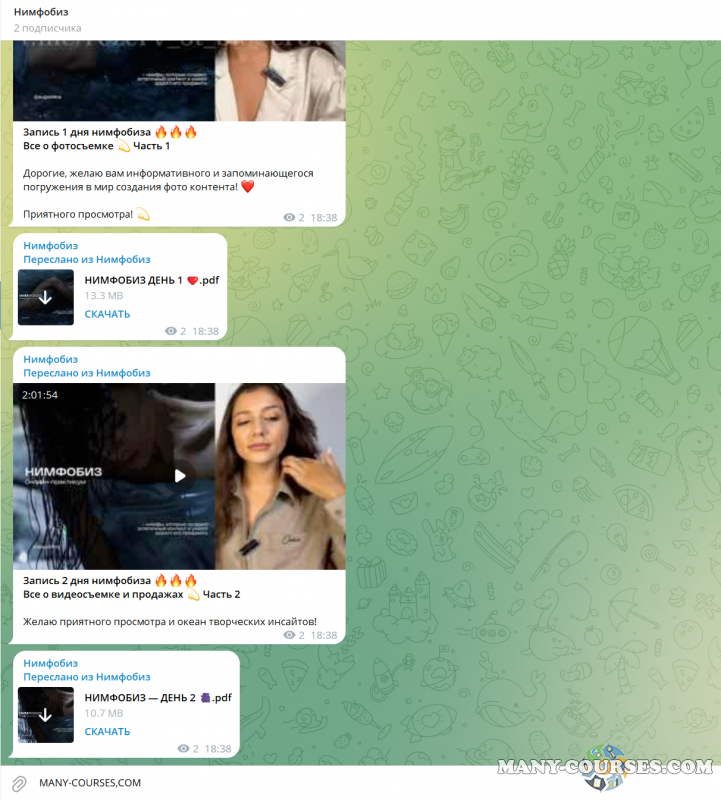 Вы находитесь на странице товара «Двухдневный практикум «Нимфобиз»», это материал 2023 года, который, мы надеемся, принесет вам пользу. Данный курс расположен на платформе «Канал Telegram».Скриншоты с платформы на которой расположены материалы вы можете найти выше. В нашем магазине курсы доступны по самым выгодным ценам. Вы можете перейти на оригинальный продажник, после чего принять решение о покупке. Если бы вы покупали у самого автора, то данный курс вам обошелся 5990 рублей. Вы получаете этот курс, купив в нашем магазине MANY-COURSES.NET, с огромной скидкой, всего 390 рублей. Обучающий курс входит в рубрику «SEO и SMM / Бизнес, менеджмент, продажи / Реклама и маркетинг», вы можете поискать другие сливы курсов в этой рубрике. В нашем магазине Вы найдёте ещё много курсов от автора «», достаточно ввести в поиск имя автора.