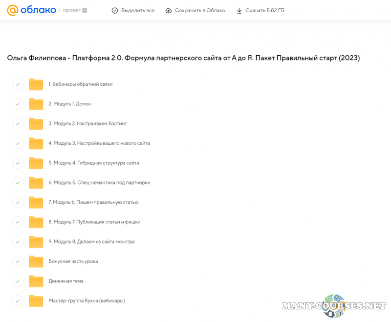 Вы находитесь на странице товара «Ольга Филиппова - Платформа 2.0. Формула партнерского сайта от А до Я. Пакет Правильный старт», это материал 2023 года, который, мы надеемся, принесет вам пользу. Данный курс расположен на платформе «Облако Mail».Скриншоты с платформы на которой расположены материалы вы можете найти выше. В нашем магазине курсы доступны по самым выгодным ценам. Вы можете перейти на оригинальный продажник, после чего принять решение о покупке. Если бы вы покупали у самого автора, то данный курс вам обошелся 7900 рублей. Вы получаете этот курс, купив в нашем магазине MANY-COURSES.NET, с огромной скидкой, всего 890 рублей. Обучающий курс входит в рубрику «SEO и SMM / Бизнес, менеджмент, продажи / Создание сайтов», вы можете поискать другие сливы курсов в этой рубрике. В нашем магазине Вы найдёте ещё много курсов от автора «Ольга Филиппова», достаточно ввести в поиск имя автора.