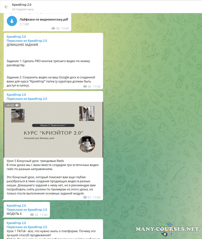 Вы находитесь на странице товара «Настя Янб - Криэйтор 2.0», это материал 2022 года, который, мы надеемся, принесет вам пользу. Данный курс расположен на платформе «Канал Telegram».Скриншоты с платформы на которой расположены материалы вы можете найти выше. В нашем магазине курсы доступны по самым выгодным ценам. Вы можете перейти на оригинальный продажник, после чего принять решение о покупке. Вы получаете этот курс, купив в нашем магазине MANY-COURSES.NET, с огромной скидкой, всего 590 рублей. Обучающий курс входит в рубрику «SEO и SMM / Бизнес, менеджмент, продажи / Видео и фото», вы можете поискать другие сливы курсов в этой рубрике. В нашем магазине Вы найдёте ещё много курсов от автора «Настя Янб», достаточно ввести в поиск имя автора.