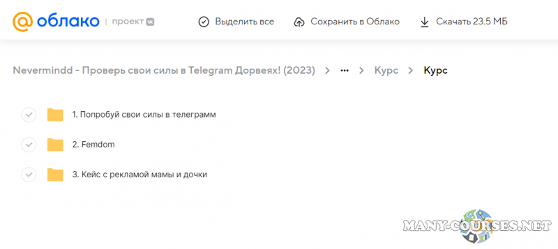 Вы находитесь на странице товара «Nevermindd - Проверь свои силы в Telegram Дорвеях!», это материал 2023 года, который, мы надеемся, принесет вам пользу. Данный курс расположен на платформе «Облако Mail».Скриншоты с платформы на которой расположены материалы вы можете найти выше. В нашем магазине курсы доступны по самым выгодным ценам. Вы получаете этот курс, купив в нашем магазине MANY-COURSES.NET, с огромной скидкой, всего 190 рублей. Обучающий курс входит в рубрику «SEO и SMM / Telegram / Бизнес, менеджмент, продажи», вы можете поискать другие сливы курсов в этой рубрике. В нашем магазине Вы найдёте ещё много курсов от автора «Nevermindd», достаточно ввести в поиск имя автора.