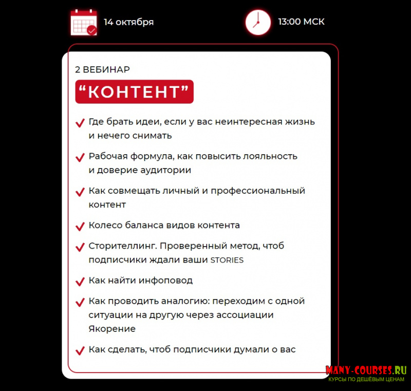 - Тайм-коды, презентации, дополнительный материал к каждому вебинару