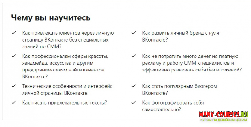 в Инстаграме очень много рекламы, люди всё меньше доверяют блогерам и предпринимателям. ВКонтакте же рекламы в разы меньше, в этой сети очень доверительное искреннее общение, комфортное для малого бизнеса. - Что отличает этот курс от других?