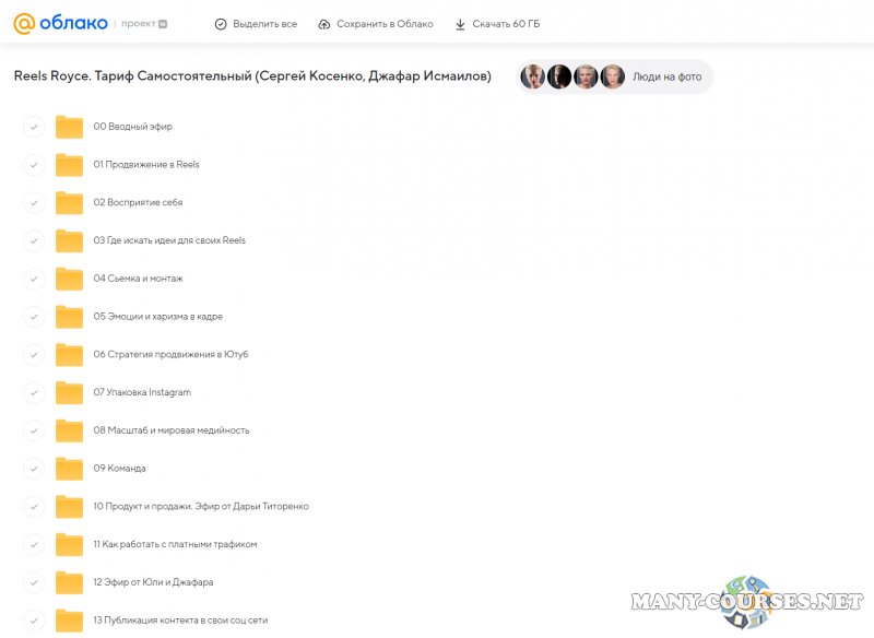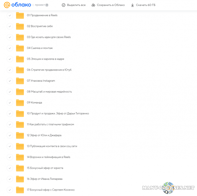 Вы находитесь на странице товара «Сергей Косенко, Джафар Исмаилов - Reels Royce. Тариф Самостоятельный», это материал 2023 года, который, мы надеемся, принесет вам пользу. Данный курс расположен на платформе «Облако Mail».Скриншоты с платформы на которой расположены материалы вы можете найти выше. В нашем магазине курсы доступны по самым выгодным ценам. Вы можете перейти на оригинальный продажник, после чего принять решение о покупке. Если бы вы покупали у самого автора, то данный курс вам обошелся 100000 рублей. Вы получаете этот курс, купив в нашем магазине MANY-COURSES.NET, с огромной скидкой, всего 400 рублей. Обучающий курс входит в рубрику «SEO и SMM / Instagram / Курсы по Reels », вы можете поискать другие сливы курсов в этой рубрике. В нашем магазине Вы найдёте ещё много курсов от автора «Сергей Косенко, Джафар Исмаилов», достаточно ввести в поиск имя автора.
