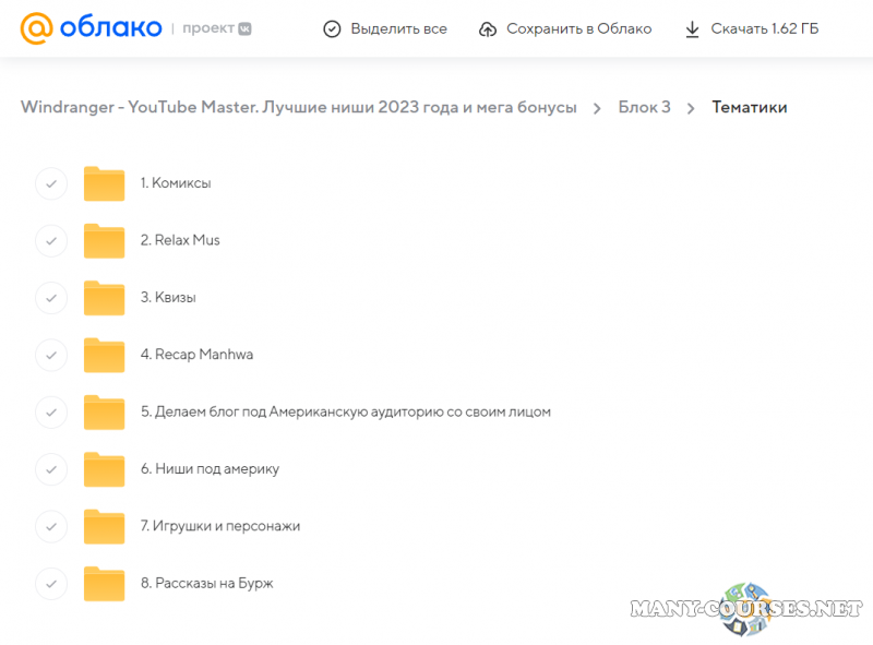 Вы находитесь на странице товара «Windranger - YouTube Master. Лучшие ниши 2023 года и мега бонусы», это материал 2023 года, который, мы надеемся, принесет вам пользу. Данный курс расположен на платформе «Облако Mail».Скриншоты с платформы на которой расположены материалы вы можете найти выше. В нашем магазине курсы доступны по самым выгодным ценам. Вы можете перейти на оригинальный продажник, после чего принять решение о покупке. Если бы вы покупали у самого автора, то данный курс вам обошелся 7500 рублей. Вы получаете этот курс, купив в нашем магазине MANY-COURSES.NET, с огромной скидкой, всего 200 рублей. Обучающий курс входит в рубрику «SEO и SMM / YouTube», вы можете поискать другие сливы курсов в этой рубрике. В нашем магазине Вы найдёте ещё много курсов от автора «Windranger», достаточно ввести в поиск имя автора.