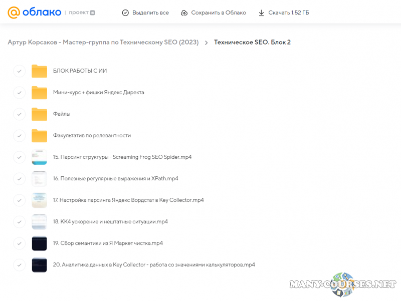 Вы находитесь на странице товара «Артур Корсаков - Мастер-группа по Техническому SEO (2023)», это материал 2023 года, который, мы надеемся, принесет вам пользу. Данный курс расположен на платформе «Облако Mail».Скриншоты с платформы на которой расположены материалы вы можете найти выше. В нашем магазине курсы доступны по самым выгодным ценам. Вы получаете этот курс, купив в нашем магазине MANY-COURSES.NET, с огромной скидкой, всего 190 рублей. Обучающий курс входит в рубрику «SEO и SMM», вы можете поискать другие сливы курсов в этой рубрике. В нашем магазине Вы найдёте ещё много курсов от автора «Артур Корсаков», достаточно ввести в поиск имя автора.