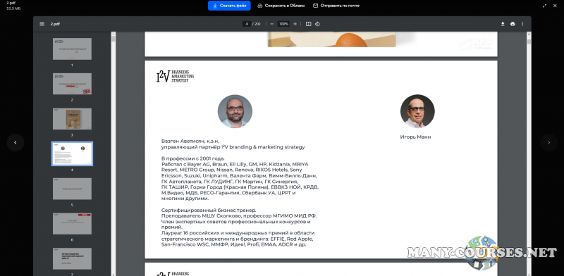 Вы находитесь на странице товара «Вазген Аветисян, Игорь Манн - Правильный брендинг (2023)», это материал 2023 года, который, мы надеемся, принесет вам пользу. Данный курс расположен на платформе «Облако Mail».Скриншоты с платформы на которой расположены материалы вы можете найти выше. В нашем магазине курсы доступны по самым выгодным ценам. Вы получаете этот курс, купив в нашем магазине MANY-COURSES.NET, с огромной скидкой, всего 690 рублей. Обучающий курс входит в рубрику «SEO и SMM / Реклама и маркетинг», вы можете поискать другие сливы курсов в этой рубрике. В нашем магазине Вы найдёте ещё много курсов от автора «Вазген Аветисян, Игорь Манн», достаточно ввести в поиск имя автора.