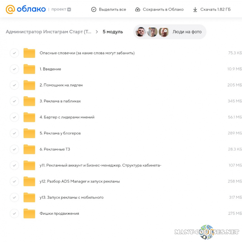 Вы находитесь на странице товара «Red SMM / Евгений Козлов, Дмитрий Кудряшов - Новая профессия: администратор Instagram», это материал 2021 года, который, мы надеемся, принесет вам пользу. Данный курс расположен на платформе «Облако Mail».Скриншоты с платформы на которой расположены материалы вы можете найти выше. В нашем магазине курсы доступны по самым выгодным ценам. Вы получаете этот курс, купив в нашем магазине MANY-COURSES.NET, с огромной скидкой, всего 410 рублей. Обучающий курс входит в рубрику «SEO и SMM / Instagram», вы можете поискать другие сливы курсов в этой рубрике. В нашем магазине Вы найдёте ещё много курсов от автора «Евгений Козлов, Дмитрий Кудряшов», достаточно ввести в поиск имя автора.