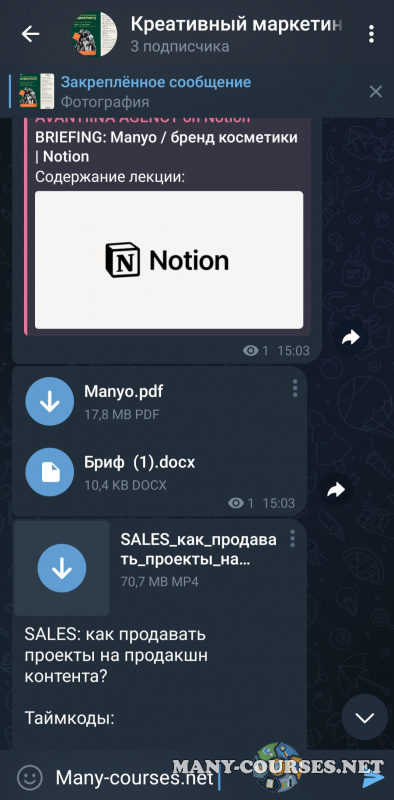 Вы находитесь на странице товара «Анастасия Хавалкина - Курс по креативному маркетингу (2023)», это материал 2022 года, который, мы надеемся, принесет вам пользу. Данный курс расположен на платформе «Канал Telegram».Скриншоты с платформы на которой расположены материалы вы можете найти выше. В нашем магазине курсы доступны по самым выгодным ценам. Вы можете перейти на оригинальный продажник, после чего принять решение о покупке. Если бы вы покупали у самого автора, то данный курс вам обошелся 52990 рублей. Вы получаете этот курс, купив в нашем магазине MANY-COURSES.NET, с огромной скидкой, всего 2490 рублей. Обучающий курс входит в рубрику «SEO и SMM / Реклама и маркетинг», вы можете поискать другие сливы курсов в этой рубрике. В нашем магазине Вы найдёте ещё много курсов от автора «Анастасия Хавалкина», достаточно ввести в поиск имя автора.