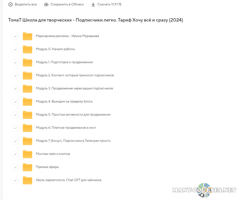 Вы находитесь на странице товара «ТомаТ Школа для творческих - Подписчики легко. Тариф Хочу всё и сразу (2024)», это материал 2024 года, который, мы надеемся, принесет вам пользу. Данный курс расположен на платформе «Облако Mail».Скриншоты с платформы на которой расположены материалы вы можете найти выше. В нашем магазине курсы доступны по самым выгодным ценам. Вы получаете этот курс, купив в нашем магазине MANY-COURSES.NET, с огромной скидкой, всего 350 рублей. Обучающий курс входит в рубрику «SEO и SMM», вы можете поискать другие сливы курсов в этой рубрике. В нашем магазине Вы найдёте ещё много курсов от автора «Тома Саркулова», достаточно ввести в поиск имя автора.