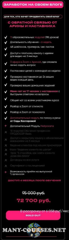 Арина Алекс - Курс по заработку на reels 10. Тариф Заработок на своем блоге (2024)