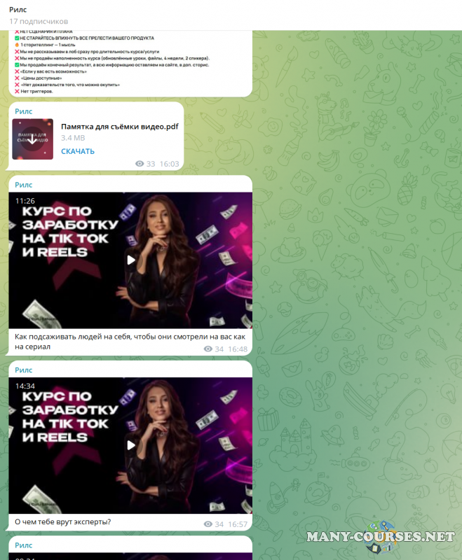 Вы находитесь на странице товара «Арина Алекс - Курс по заработку на reels 10. Тариф Заработок на своем блоге (2024)», это материал 2024 года, который, мы надеемся, принесет вам пользу. Данный курс расположен на платформе «Канал Telegram».Скриншоты с платформы на которой расположены материалы вы можете найти выше. В нашем магазине курсы доступны по самым выгодным ценам. Если бы вы покупали у самого автора, то данный курс вам обошелся 72700 рублей. Вы получаете этот курс, купив в нашем магазине MANY-COURSES.NET, с огромной скидкой, всего 1990 рублей. Обучающий курс входит в рубрику «SEO и SMM / Реклама и маркетинг», вы можете поискать другие сливы курсов в этой рубрике. В нашем магазине Вы найдёте ещё много курсов от автора «Арина Алекс», достаточно ввести в поиск имя автора.