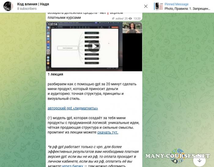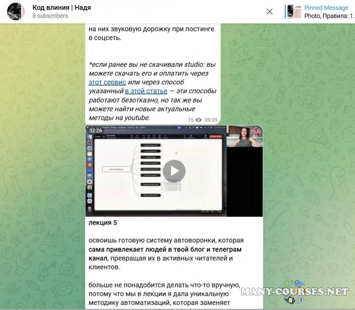 Вы находитесь на странице товара «Надежда Косенок - Код влияния. Тариф Премиальный», это материал 2025 года, который, мы надеемся, принесет вам пользу. Данный курс расположен на платформе «Канал Telegram».Скриншоты с платформы на которой расположены материалы вы можете найти выше. В нашем магазине курсы доступны по самым выгодным ценам. Вы можете перейти на оригинальный продажник, после чего принять решение о покупке. Если бы вы покупали у самого автора, то данный курс вам обошелся 9300 рублей. Вы получаете этот курс, купив в нашем магазине MANY-COURSES.NET, с огромной скидкой, всего 890 рублей. Обучающий курс входит в рубрику «SEO и SMM / Реклама и маркетинг», вы можете поискать другие сливы курсов в этой рубрике. В нашем магазине Вы найдёте ещё много курсов от автора «Надежда Косенок», достаточно ввести в поиск имя автора.