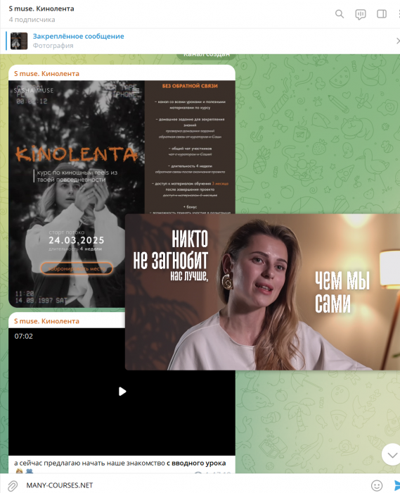 Sasha Muse / Kinolenta - Курс по киношным reels из твоей повседневности. Тариф Без обратной связи