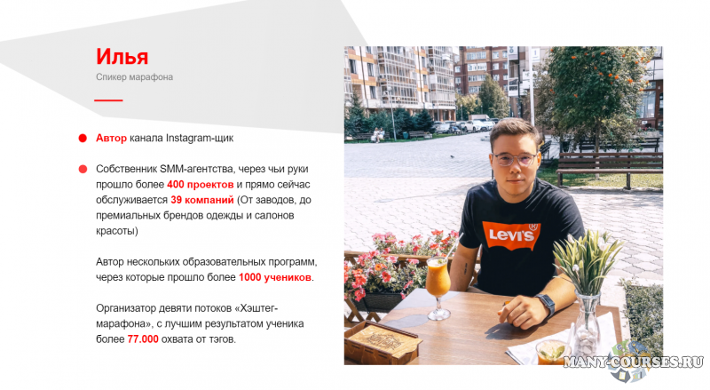 Вы находитесь на странице товара «Instagram-щик / Илья Миндибеков - Хэштег-марафон Reloaded (2021)», это материал 2021 года, который, мы надеемся, принесет вам пользу. Скриншоты с платформы на которой расположены материалы вы можете найти выше. В нашем магазине курсы доступны по самым выгодным ценам. Вы можете перейти на оригинальный продажник, после чего принять решение о покупке. Если бы вы покупали у самого автора, то данный курс вам обошелся 2990 рублей. Вы получаете этот курс, купив в нашем магазине MANY-COURSES.NET, с огромной скидкой, всего 99 рублей. Обучающий курс входит в рубрику «SEO и SMM / Instagram», вы можете поискать другие сливы курсов в этой рубрике. В нашем магазине Вы найдёте ещё много курсов от автора «Instagram-щик / Илья Миндибеков», достаточно ввести в поиск имя автора.