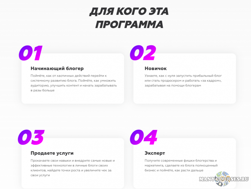 Получите современные фишки блогерства и маркетинга, сделаете из блога полноценный бизнес и поймёте, как расти дальше