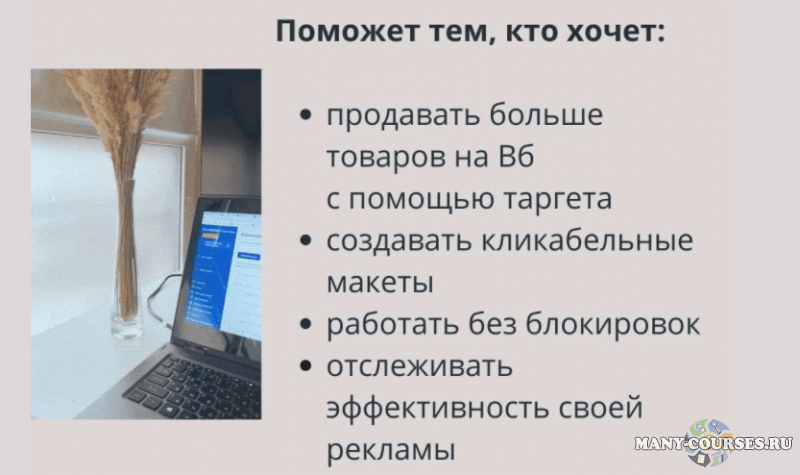 Вы находитесь на странице товара «Люся Волкова - Таргетированная реклама на Wildberries», это материал 2021 года, который, мы надеемся, принесет вам пользу. Данный курс расположен на платформе «Облако Mail».Скриншоты с платформы на которой расположены материалы вы можете найти выше. В нашем магазине курсы доступны по самым выгодным ценам. Вы можете перейти на оригинальный продажник, после чего принять решение о покупке. Если бы вы покупали у самого автора, то данный курс вам обошелся 2490 рублей. Вы получаете этот курс, купив в нашем магазине MANY-COURSES.NET, с огромной скидкой, всего 70 рублей. Обучающий курс входит в рубрику «SEO и SMM / Реклама и маркетинг / Wildberries», вы можете поискать другие сливы курсов в этой рубрике. В нашем магазине Вы найдёте ещё много курсов от автора «Люся Волкова», достаточно ввести в поиск имя автора.