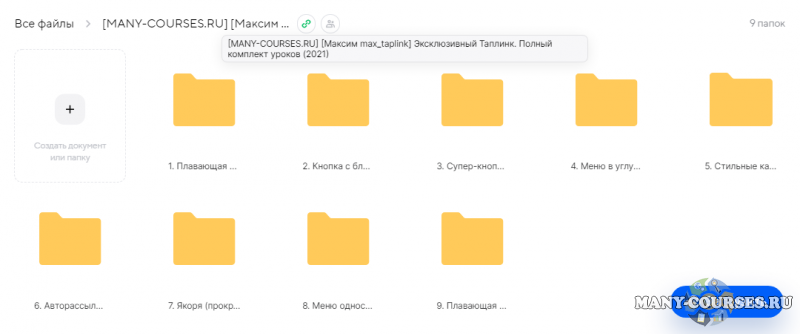 Вы находитесь на странице товара «Максим max_taplink - Эксклюзивный Таплинк. Полный комплект уроков», это материал 2021 года, который, мы надеемся, принесет вам пользу. Данный курс расположен на платформе «Облако Mail».Скриншоты с платформы на которой расположены материалы вы можете найти выше. В нашем магазине курсы доступны по самым выгодным ценам. Вы можете перейти на оригинальный продажник, после чего принять решение о покупке. Если бы вы покупали у самого автора, то данный курс вам обошелся 4900 рублей. Вы получаете этот курс, купив в нашем магазине MANY-COURSES.NET, с огромной скидкой, всего 100 рублей. Обучающий курс входит в рубрику «SEO и SMM», вы можете поискать другие сливы курсов в этой рубрике. В нашем магазине Вы найдёте ещё много курсов от автора «Максим max_taplink», достаточно ввести в поиск имя автора.