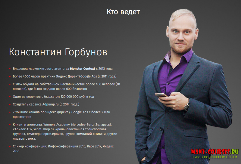 Вы находитесь на странице товара «Monster Context / Константин Горбунов - Аналитика рекламных кампаний в Яндекс.Директ», это материал 2020 года, который, мы надеемся, принесет вам пользу. Скриншоты с платформы на которой расположены материалы вы можете найти выше. В нашем магазине курсы доступны по самым выгодным ценам. Вы можете перейти на оригинальный продажник, после чего принять решение о покупке. Если бы вы покупали у самого автора, то данный курс вам обошелся 3000 рублей. Вы получаете этот курс, купив в нашем магазине MANY-COURSES.NET, с огромной скидкой, всего 50 рублей. Обучающий курс входит в рубрику «SEO и SMM», вы можете поискать другие сливы курсов в этой рубрике. В нашем магазине Вы найдёте ещё много курсов от автора «Monster Context», достаточно ввести в поиск имя автора.