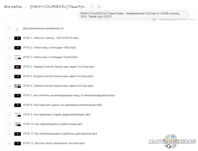 Вы находитесь на странице товара «Паша Рулер - Американский YouTube от 1.000$ в месяц. 2022. Тариф Курс», это материал 2022 года, который, мы надеемся, принесет вам пользу. Данный курс расположен на платформе «Облако Mail».Скриншоты с платформы на которой расположены материалы вы можете найти выше. В нашем магазине курсы доступны по самым выгодным ценам. Вы получаете этот курс, купив в нашем магазине MANY-COURSES.NET, с огромной скидкой, всего 149 рублей. Обучающий курс входит в рубрику «SEO и SMM / YouTube / Бизнес, менеджмент, продажи», вы можете поискать другие сливы курсов в этой рубрике. В нашем магазине Вы найдёте ещё много курсов от автора «Паша Рулер», достаточно ввести в поиск имя автора.
