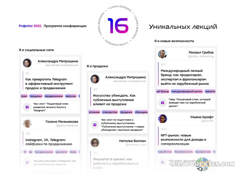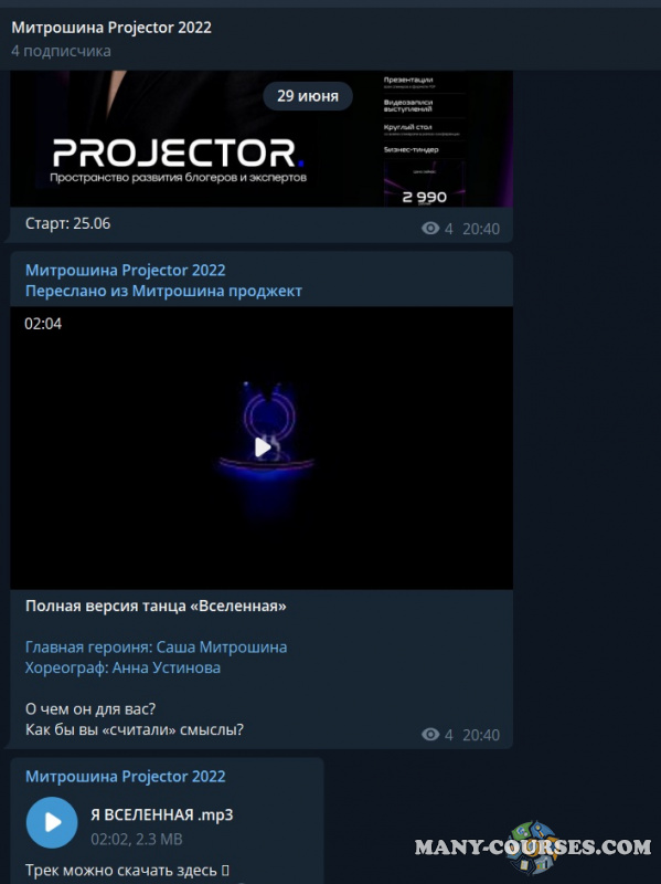 Вы находитесь на странице товара «Александра Митрошина - Projector. Самая полезна онлайн-конференция», это материал 2022 года, который, мы надеемся, принесет вам пользу. Данный курс расположен на платформе «Канал Telegram».Скриншоты с платформы на которой расположены материалы вы можете найти выше. В нашем магазине курсы доступны по самым выгодным ценам. Вы можете перейти на оригинальный продажник, после чего принять решение о покупке. Если бы вы покупали у самого автора, то данный курс вам обошелся 4490 рублей. Вы получаете этот курс, купив в нашем магазине MANY-COURSES.NET, с огромной скидкой, всего 349 рублей. Обучающий курс входит в рубрику «Instagram / Бизнес, менеджмент, продажи / Реклама и маркетинг», вы можете поискать другие сливы курсов в этой рубрике. В нашем магазине Вы найдёте ещё много курсов от автора «Александра Митрошина», достаточно ввести в поиск имя автора.